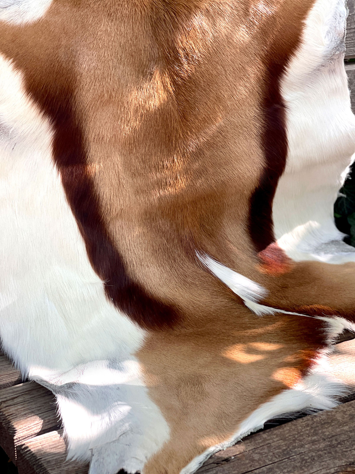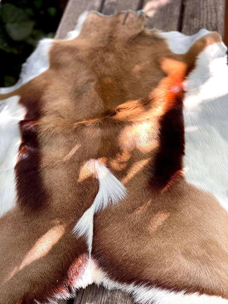 Tüylü ceylan derisinin tüyleri yumuşak ve canlı renklerdedir.